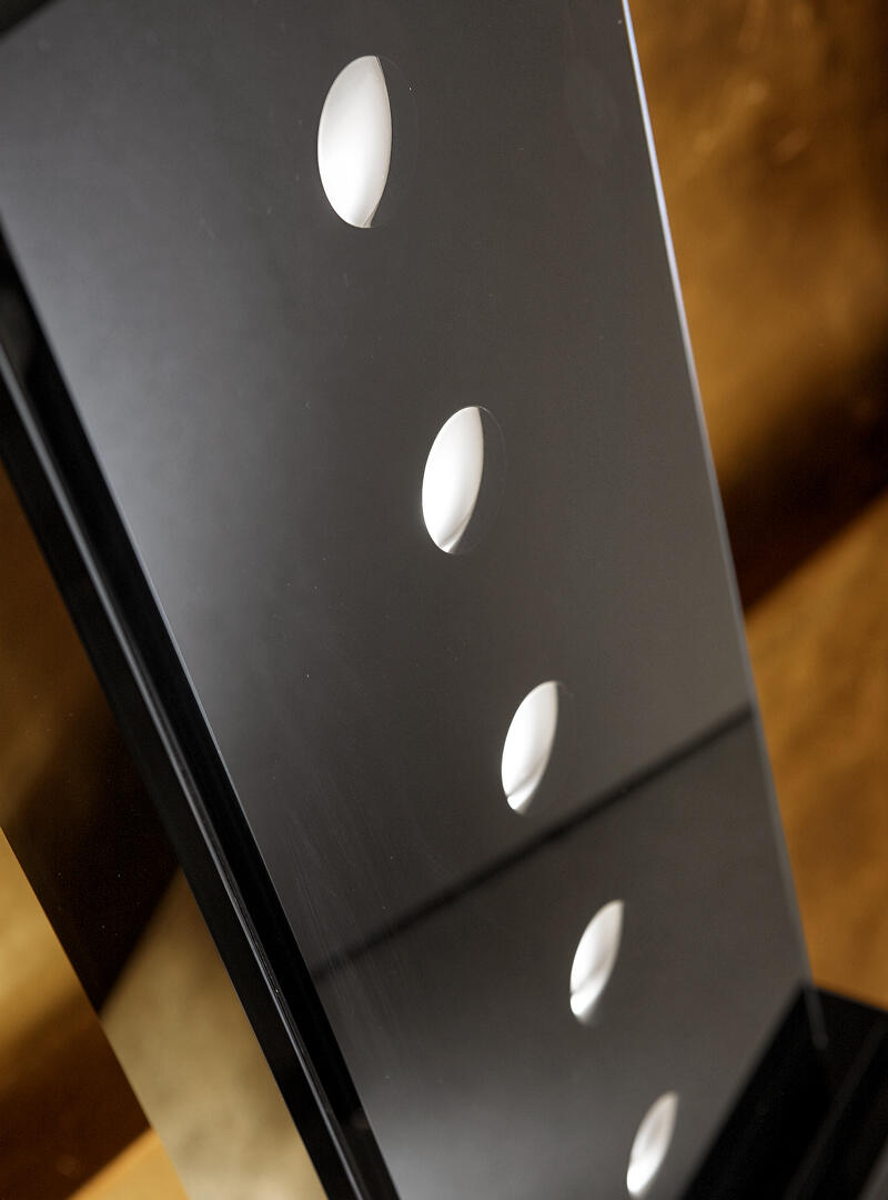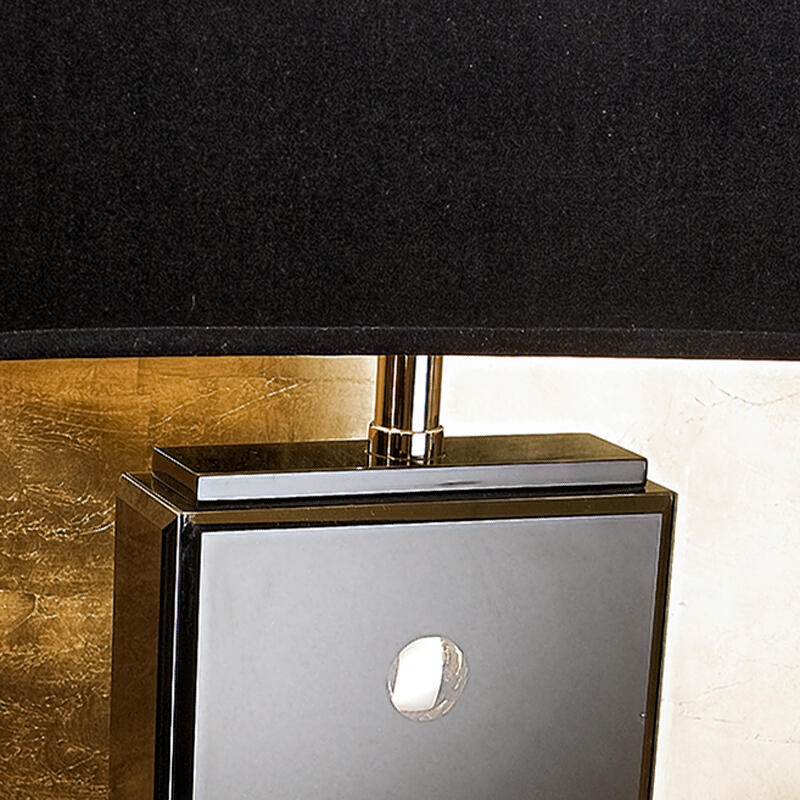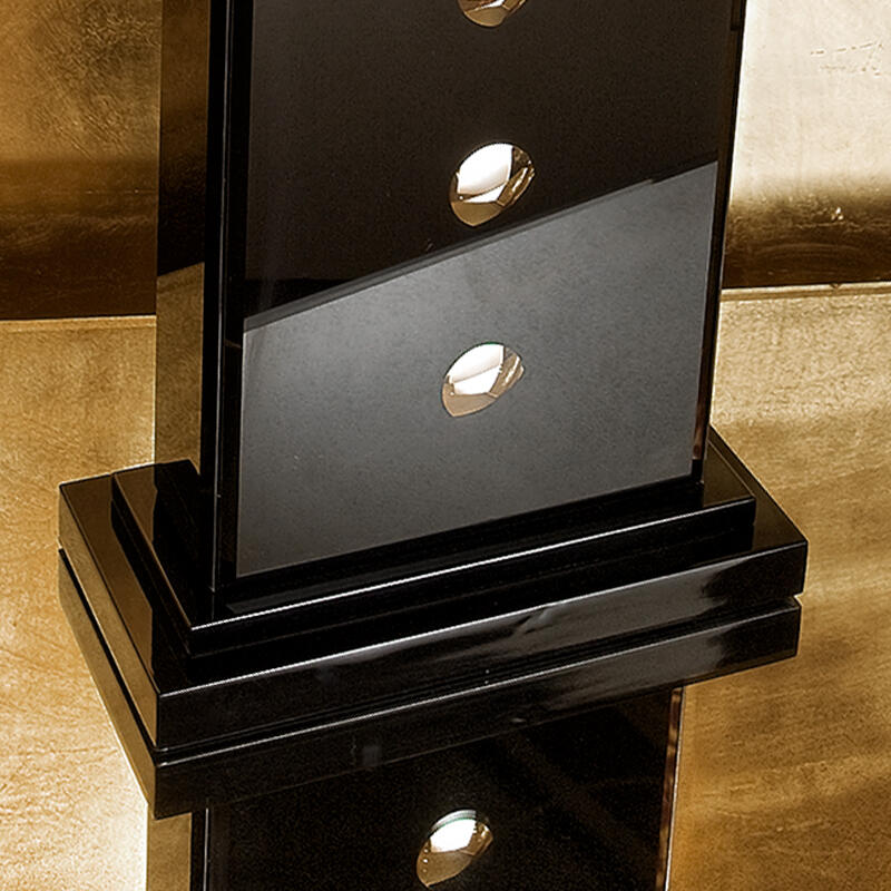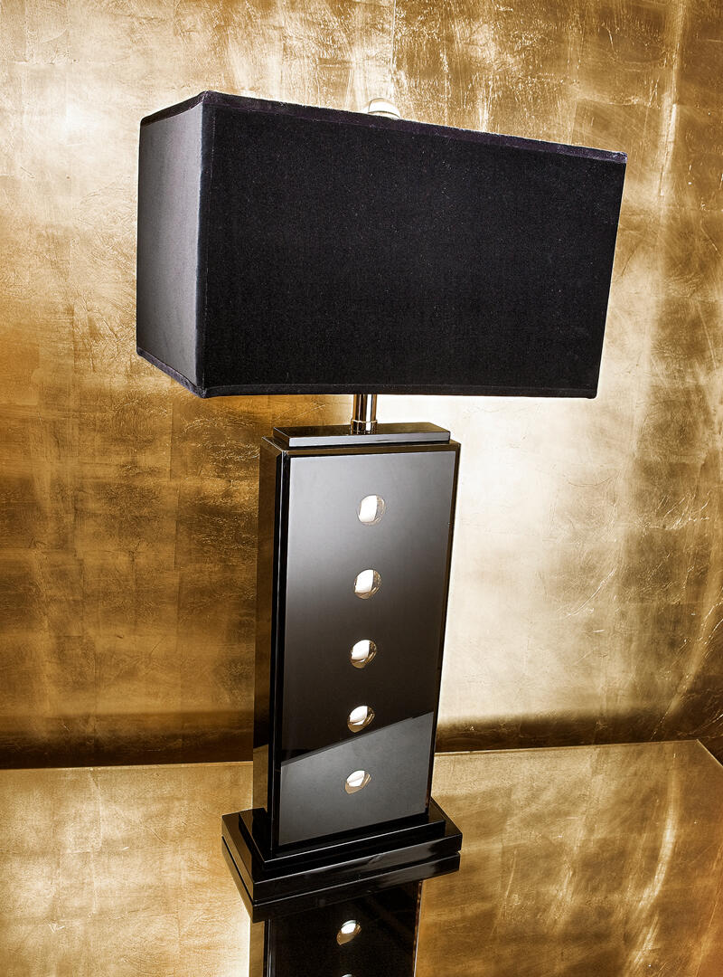 Art Déco Table Lamp covered in black glass with hand engraved and mirrored shiny spheres with 2 lights.